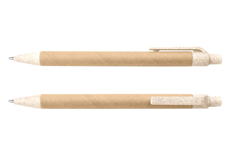 Bolígrafo ecológico con sistema retráctil. Paja de trigo en la parte superior e inferior