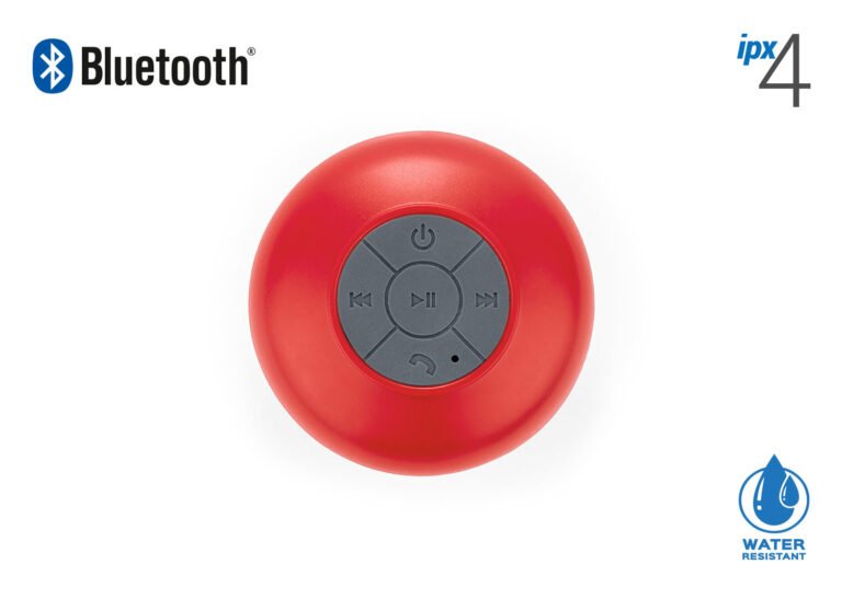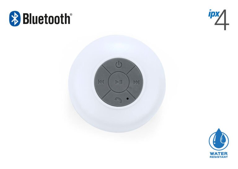 Altavoz Bluetooth V3,0 + EDR, Frecuencia de transmisión: 2.4 g hz, fuente de alimentación: DC 5V 100-120ma, batería: 3.7v 400mAh de litio, tiempo de carga: aprox.3 horas, Tiempo de funcionamiento: aprox.6 horas. respuesta de frecuencia: 100 Hz-20kHz, salida: 3W, rango: hasta 10 mt. distorsión: u003c1.0%. Incluye cable de carga y chupa de succión. Resistente al agua grado IPX4.