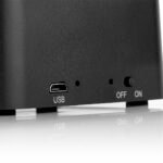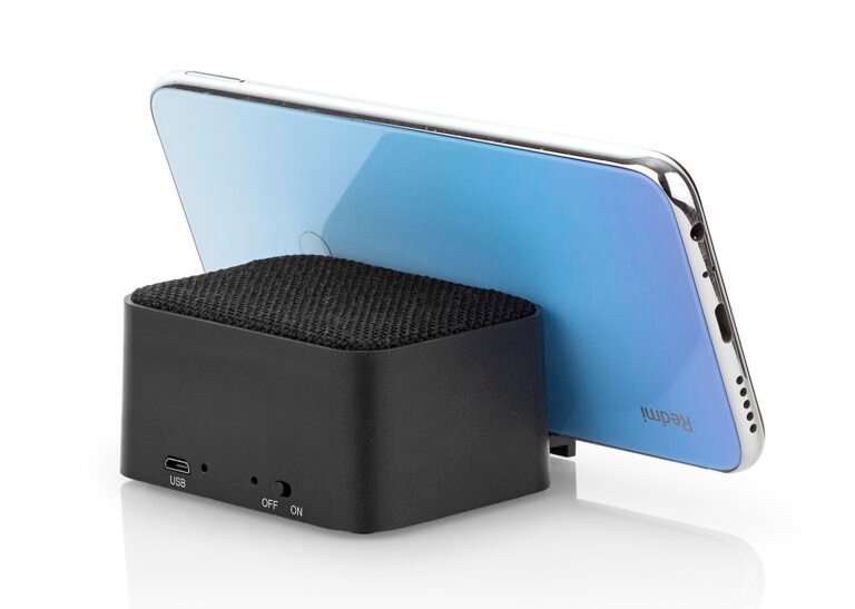 Altavoz Bluetooth versión 5.0 con compartimiento desplegable para usar como Holder de celular. Batería 3.7V/ 2000 MAH. Frecuencia 30 KHz. Potencia de salida 3W. Switch de encendido/apagado. Incluye cable USB para carga.