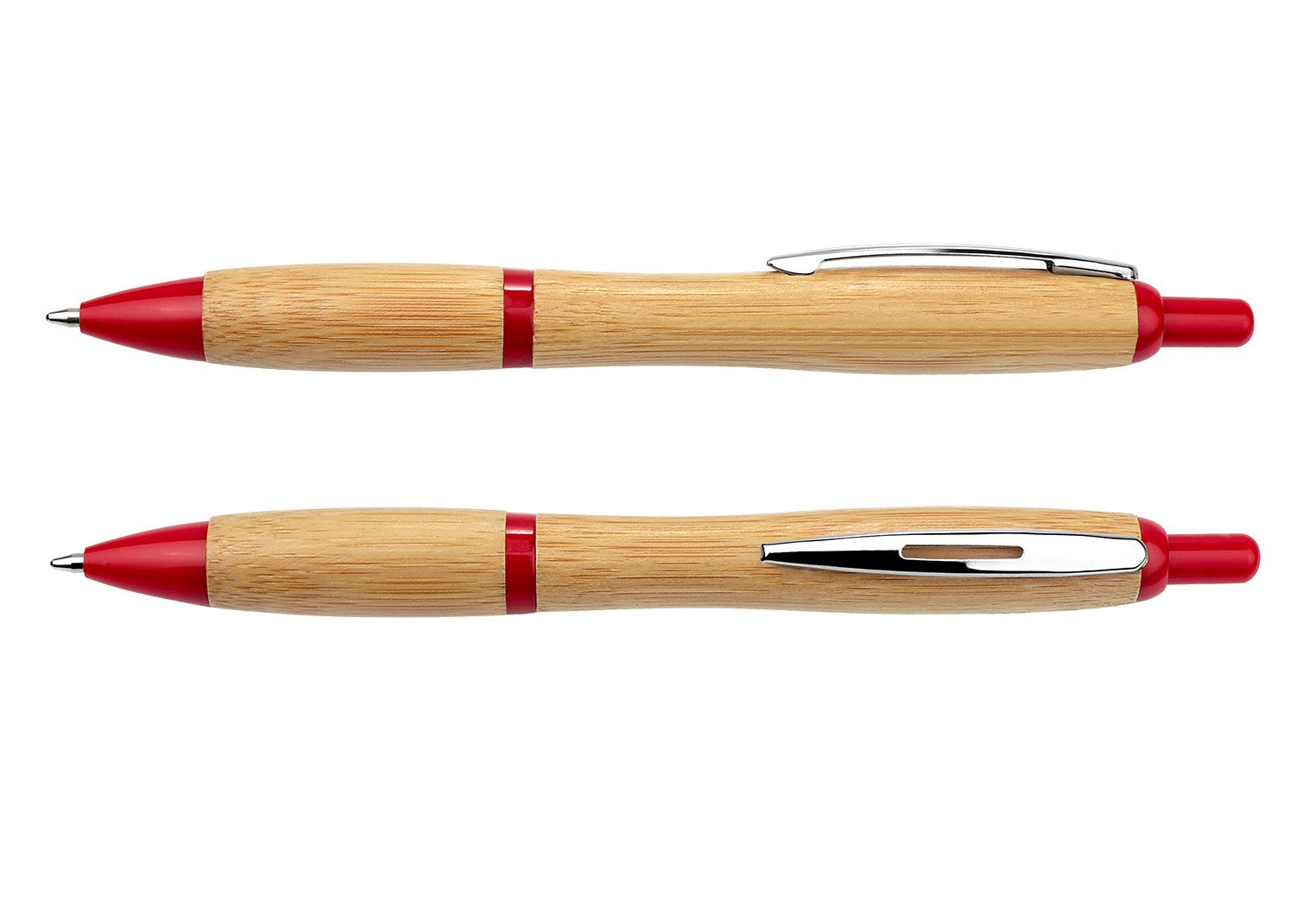 Bolígrafo ecológico en bambú con sistema de apertura retráctil. Clip Metálico