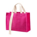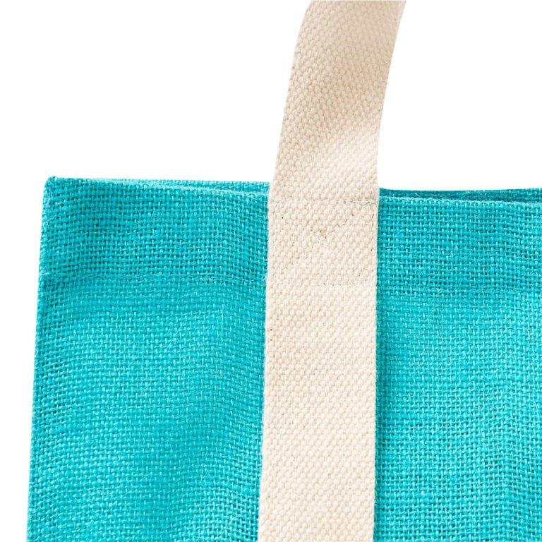 Bolsa de yute con asas de algodon. Interior plastificado. Incluye fuelle que proporciona mayor espacio tus pertenencias. Su asa colgante y vibrante gama de colores, anade frescura y personalidad a donde quiera que vayas. El yute es un producto natural el cual puede presentar variaciones en tonalidades y en la urdimbre y trama de la tela.