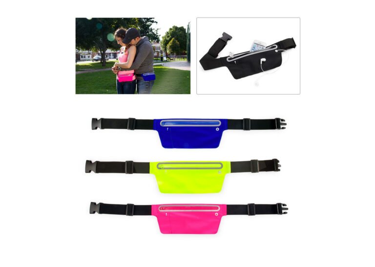 Canguro multiusos impermeable. Protege sus artículos mientras realiza cualquier deporte. Fácil de llevar, correa a la cintura ajustable y hebilla de liberación rápida. Orificio para audífonos y cinta reflectiva.