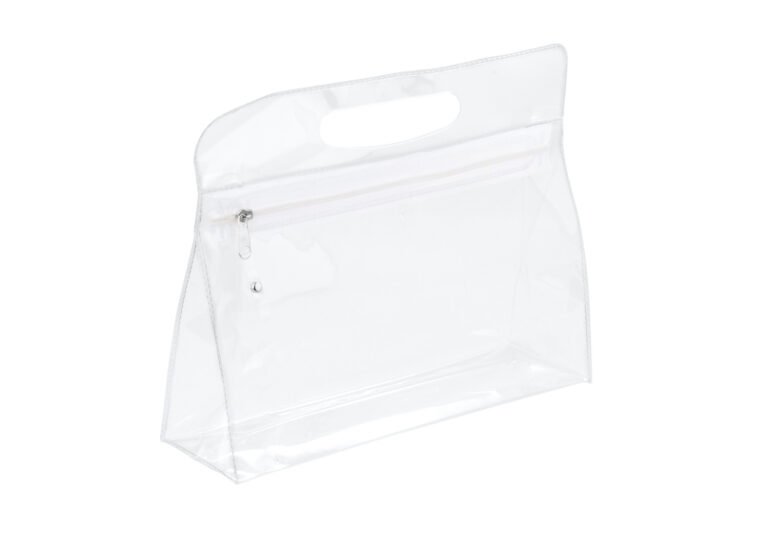 Estuche plástico con cremallera y agarradera. Ideal para los cosméticos, productos de aseo personal en viajes, etc.
