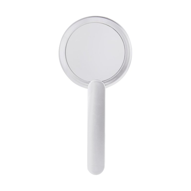 Espejo 1 lado con aumento 2X y 1 lado normal. Cuenta con mango para sostener.