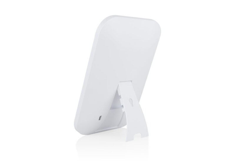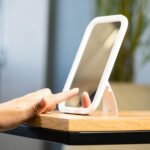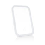 Espejo para tocador o para viaje con luz led incluida. Soporte para mesa y orificio que permite colgarlo. Permite ajustar el brillo según la necesidad.