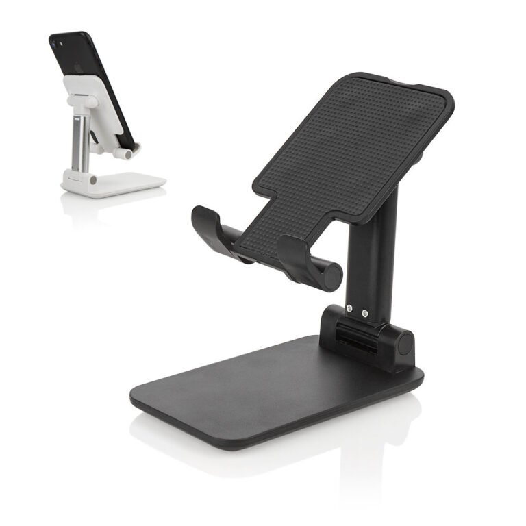 Soporte plegable y ajustable para dispositivos móviles, con base antideslizante.