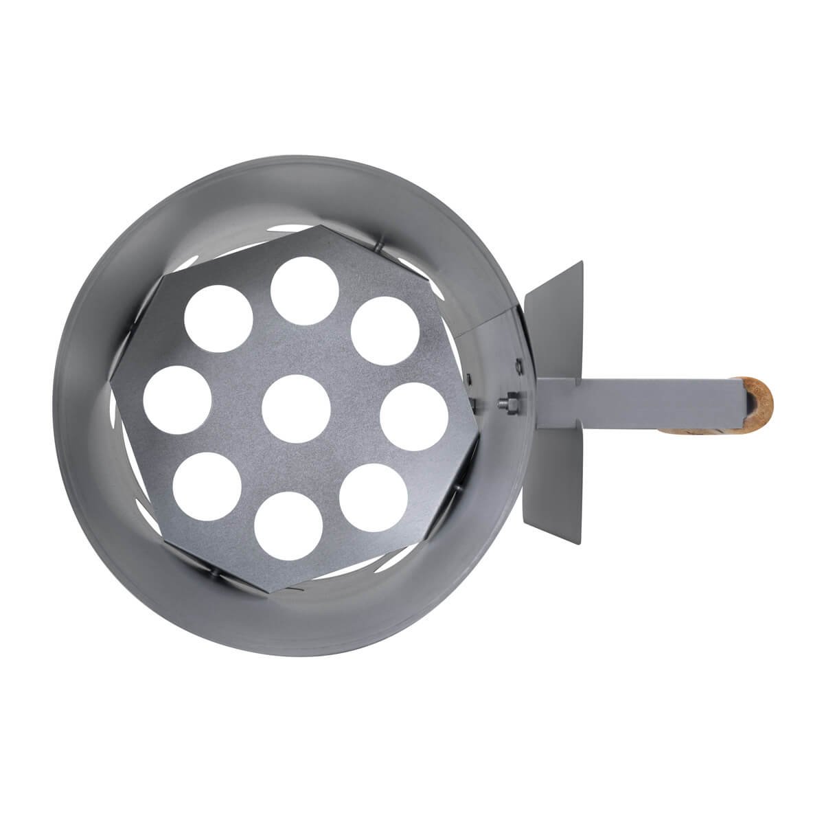 Pared de acero inoxidable. Incluye mango disenado ergonomicamente, no resbala y permite una facil manipulacion. Este practico accesorio acelera el proceso de encendido de carbon sin necesidad de quimicos, asegurando brasas uniformes para disfrutar de una coccion perfecta. Fabricado con materiales resistentes al calor, su diseno con orificios estrategicos optimiza el flujo de aire para un encendido facil y controlado. Capacidad de hasta 2kg.