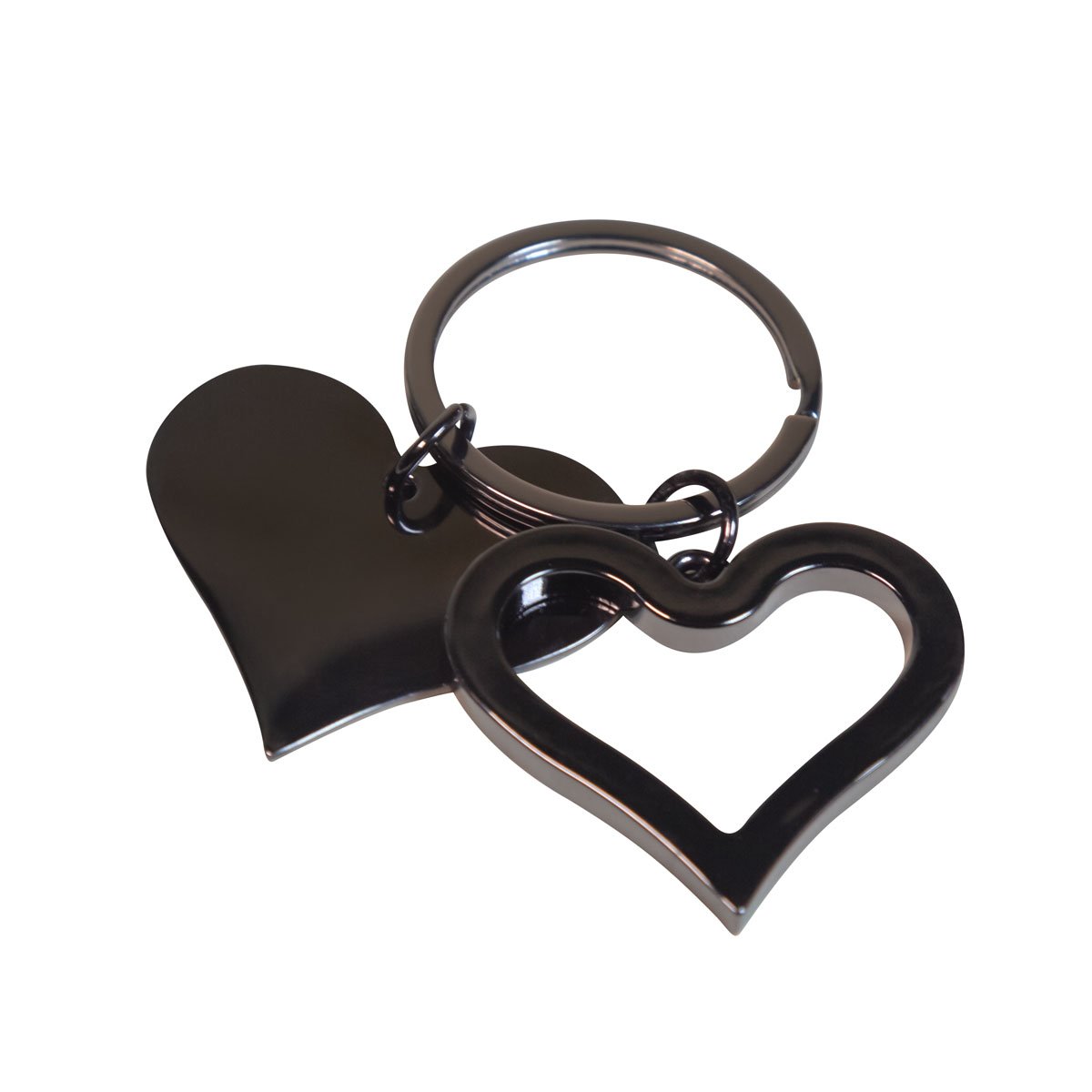 Llavero en forma de corazon con placa para grabado. Incluye caja individual.