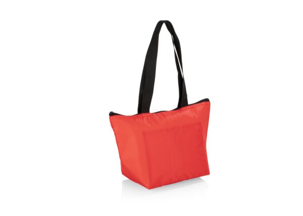 Lonchera térmica con cremallera, agarraderas, bolsillo frontal sin cremallera y revestimiento interior en aluminio para conservar la temperatura por un mayor tiempo.