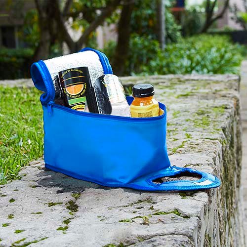 Interior metalizado. Bolsa principal con cierre y bolsa frontal. Asas con velcro.