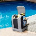 Interior plastificado. Cuenta con compartimentos superior e inferior con cierre. Incluye bolsas laterales de red, asa con broche y correa ajustable. Capacidad para 5 latas.