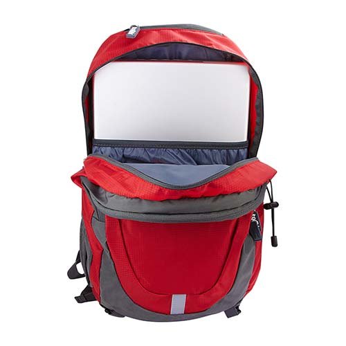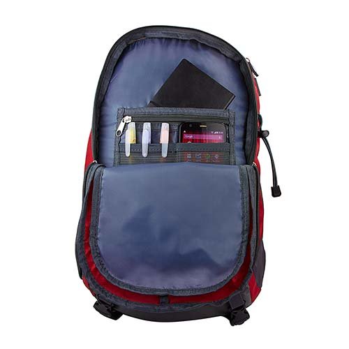 Tres bolsas frontales con compartimentos para celular y documentos. Espacio para laptop de hasta 15″. Bolsa lateral de malla. Respaldo y tirantes acojinados.