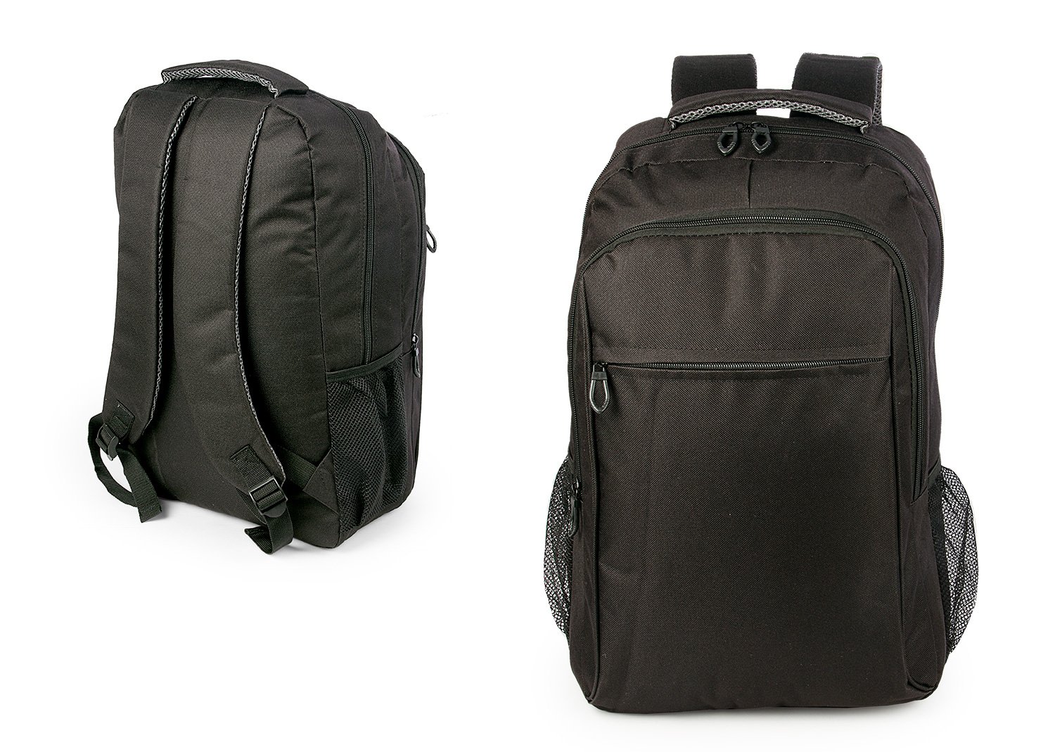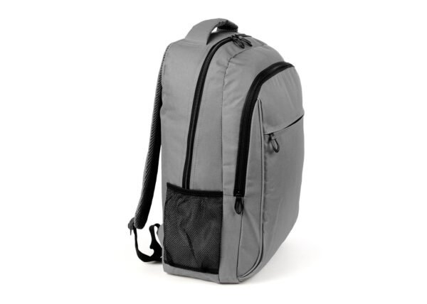 Morral con cargaderas acolchadas, bolsillo principal con compartimento y velcro para portátil de 15″ y dos bolsillos auxiliares todos con cierre de cremallera. Bolsillos laterales de malla.