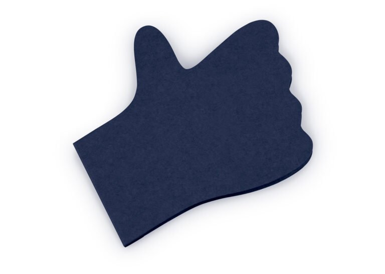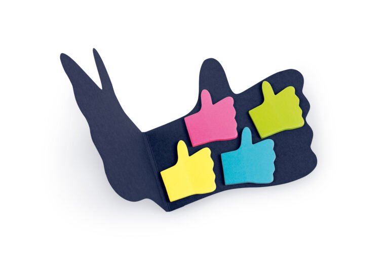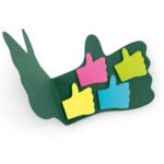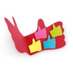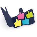 Memo con cubierta en forma de mano con pulgar arriba. 25 notas adhesivas por color (4 colores).
