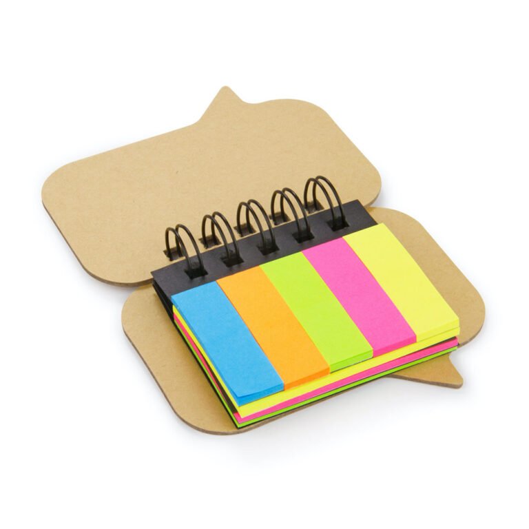 Set argollado doble «O», contiene: Juego de 5 colores de banderas adhesivas en papel x 25 unidades cada color, 3 juegos de memos adhesivos x 25 hojas cada color.