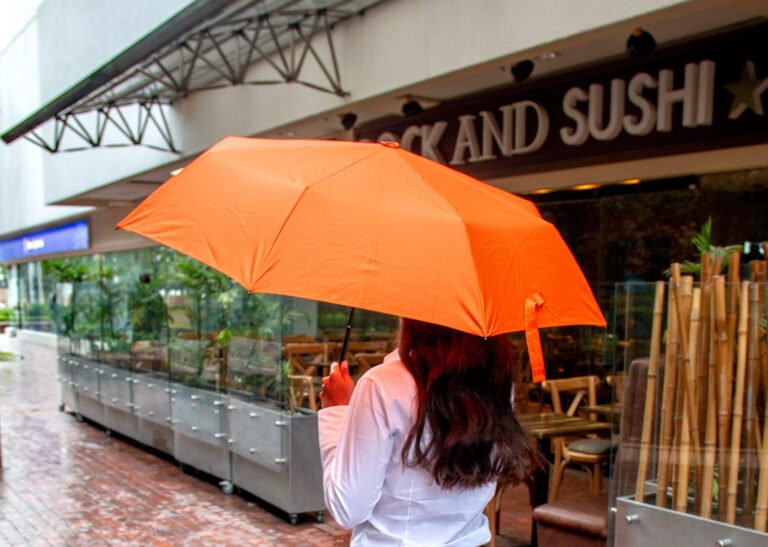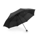 Paraguas 21 pulgadas x 8 cascos, 3 secciones con cierre manual y tecnología windproof que lo hace resistente al viento. Antibrisa. Costillas en fibra de vidrio. Mango plástico con gancho para transportar fácilmente. Incluye funda.
