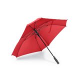 Paraguas cuadrado tipo Golf de 27» cons sistema de apertura automática, 8 castos, marco completo y costillas en fibra de vidrio, mango en ABS con acabado de caucho, pongee 190t, Antibrisa.