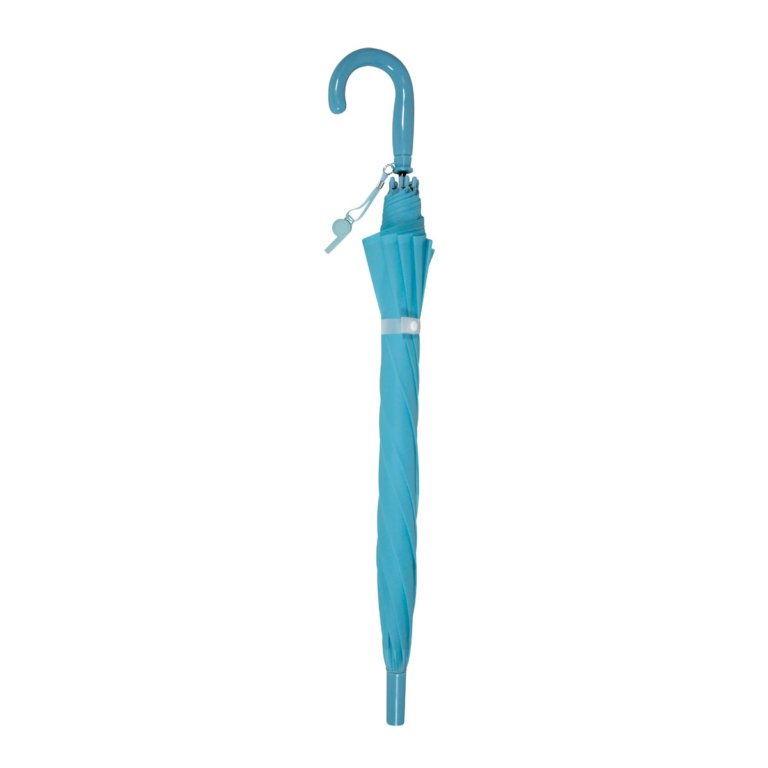 Paraguas con diseno de 8 paneles y proteccion UV. Su medida es ideal para ninos y su sistema de apertura automatica facilita su uso. El mango de plastico no solo proporciona un agarre comodo, sino que tambien cuenta con un divertido silbato de juguete incorporado. ¡Este paraguas no solo protege de la lluvia, sino que tambien despierta la imaginacion y el entusiasmo de los mas pequenos!