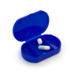 Pastillero plástico ovalado de 3 compartimentos. Cierre a presión.
