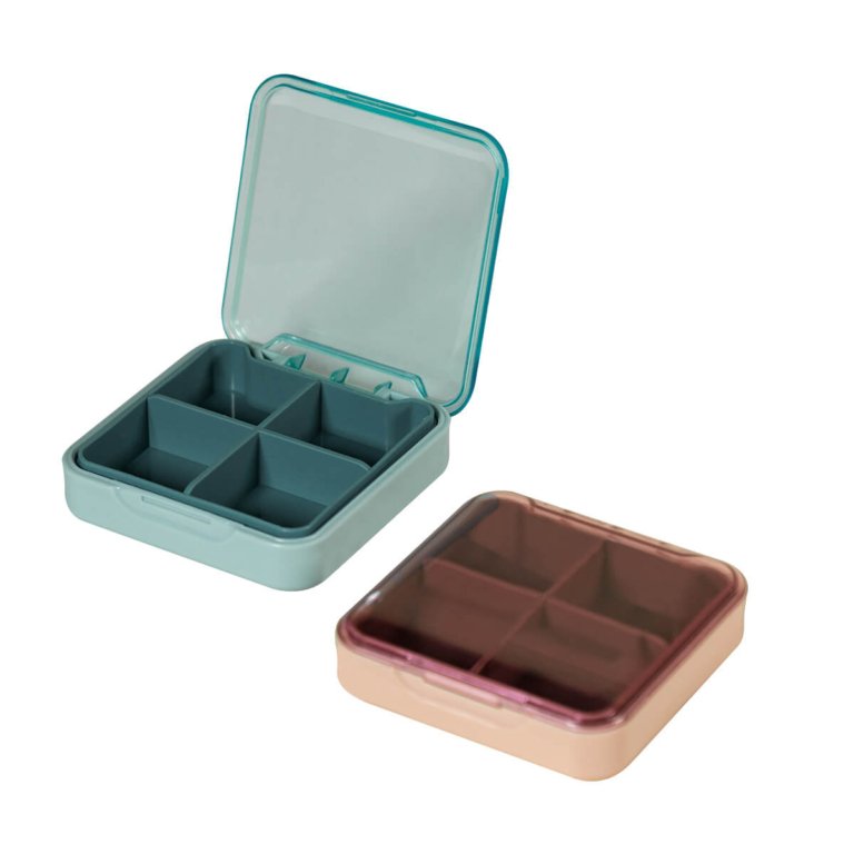 Pastillero compacto. Cuenta con un organizador removible de 4 compartimentos que permite separar tus medicamentos y gestionarlos de manera sencilla.