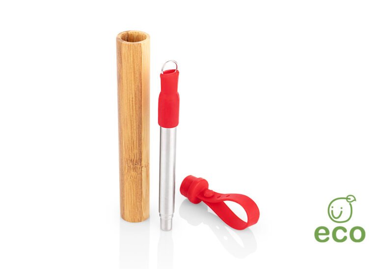 Pitillos ecológicos en acero inoxidable y boquilla en silicona con estuche en Bambú, Practica tapa con correa para transportr facilmente y cepillo para su limpieza. Producto de uso personal. No se aceptan devoluciones.