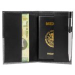 Compartimento para pasaporte y billetes. Incluye elastico para boligrafo (No incluido).