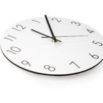 Reloj de pared en MDF (madera) con manecillas de aluminio. No incluye baterías.