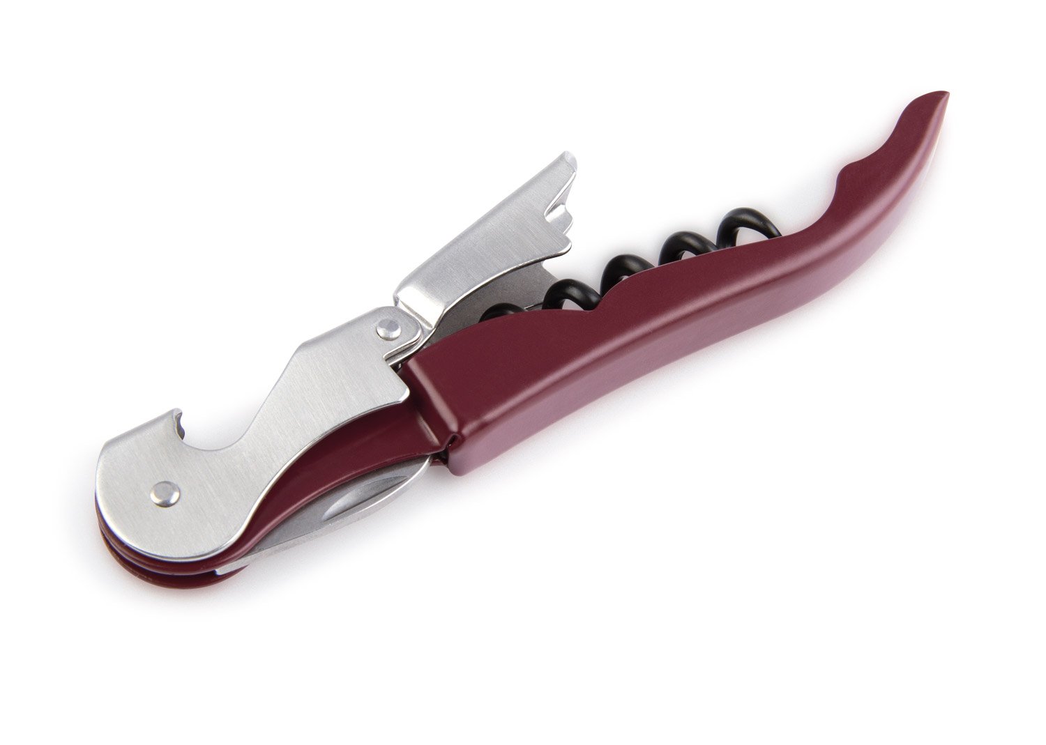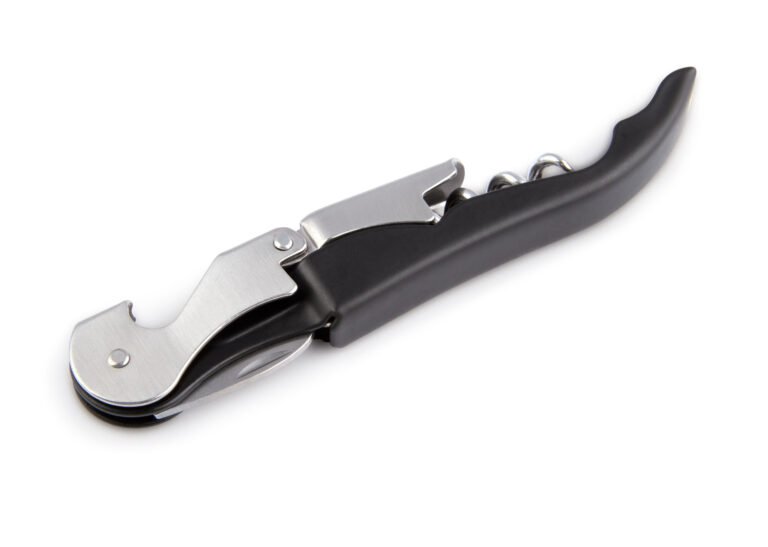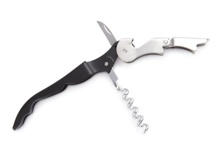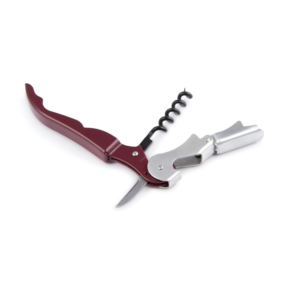 Sacacorchos de 2 tiempos, con destapador de botellas y navaja.