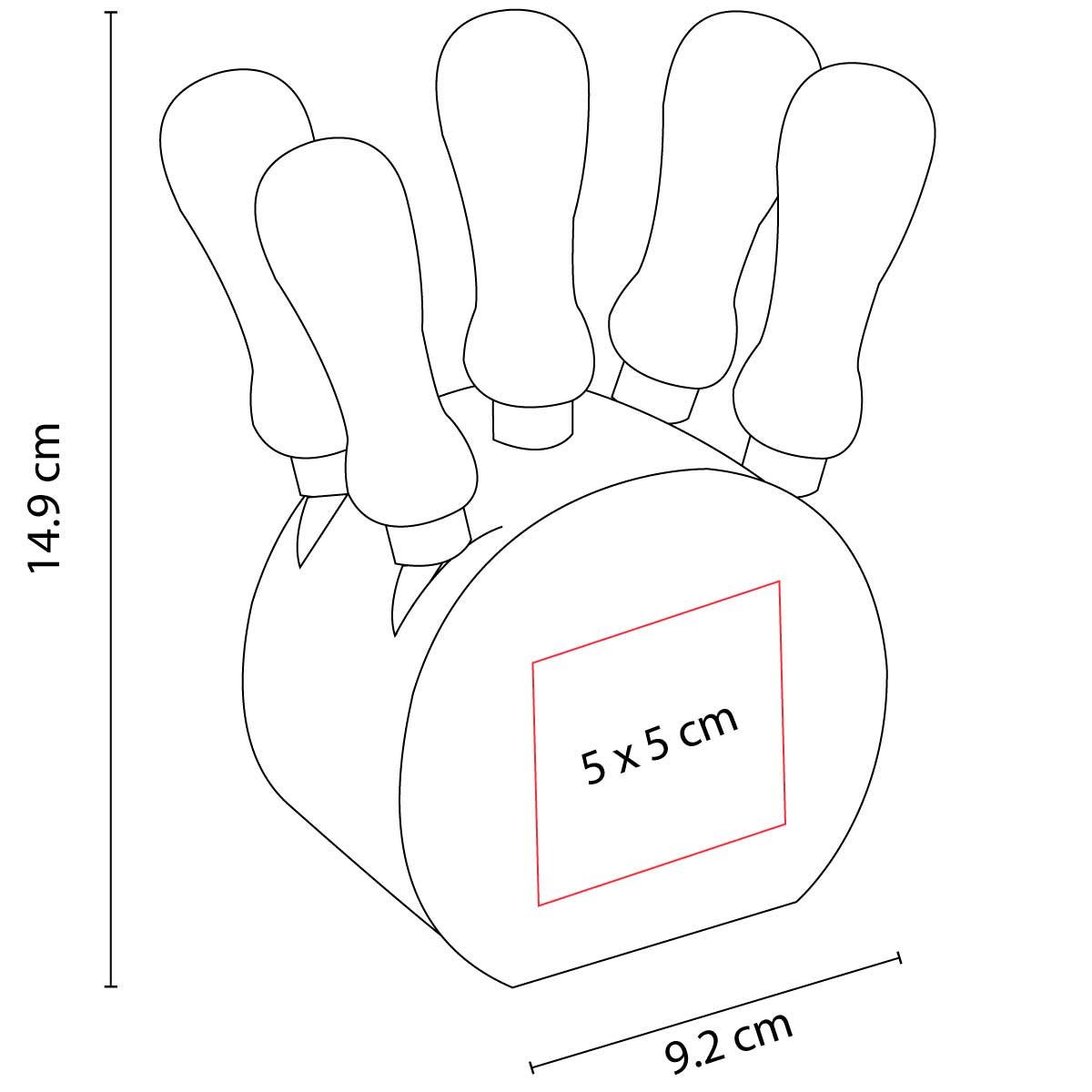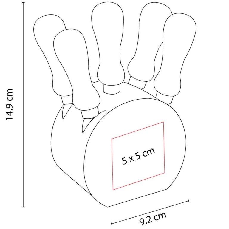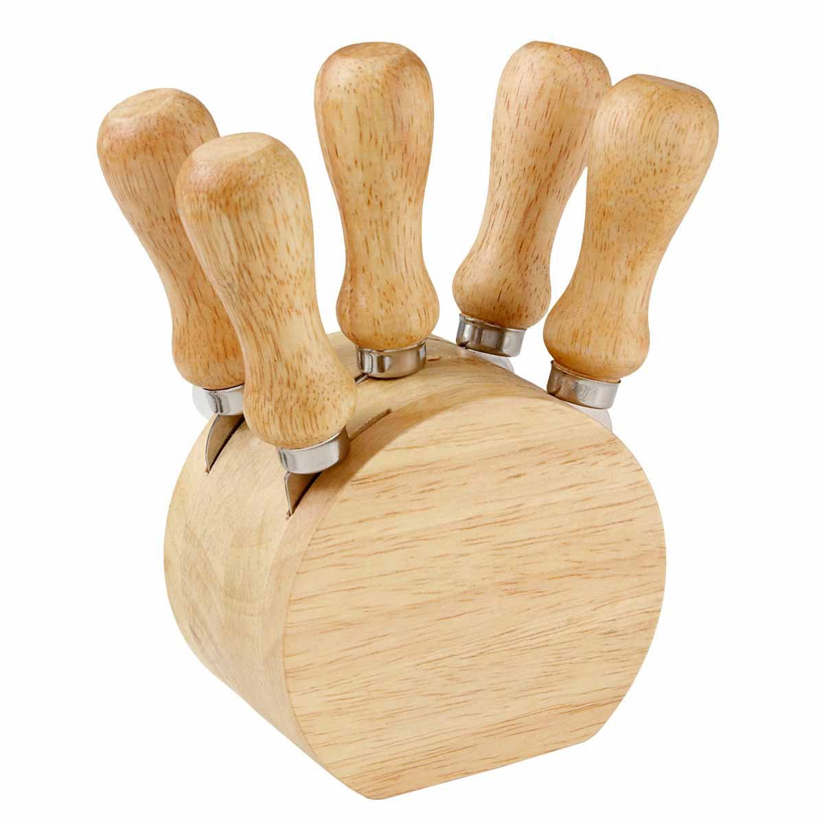 Set de madera, con 1 base con 4 cuchillos y 1 tenedor para quesos. La madera es un producto natural el cual puede presentar variaciones en tonalidades y vetas.