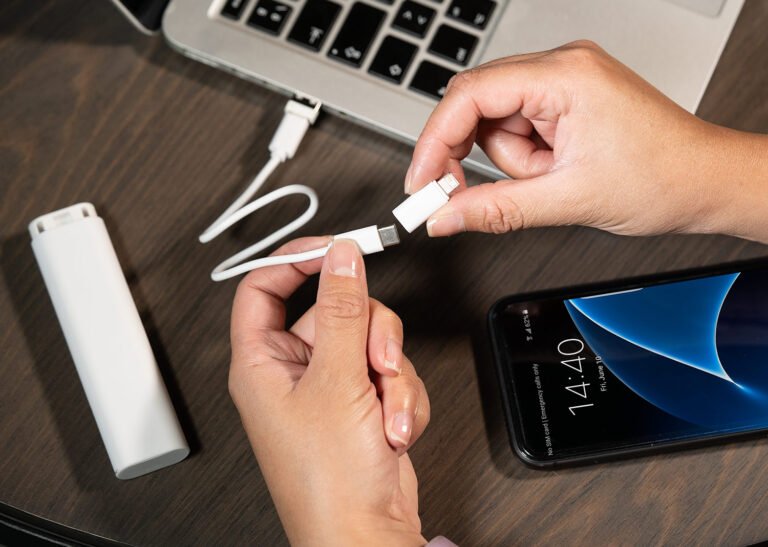 Práctico set de cables que incluye: USB, Tipo-C, Lightning y Micro, clip extractor de tarjeta SIM.