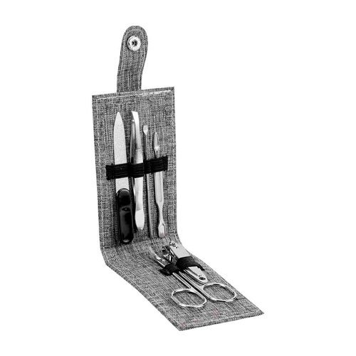 Incluye 1 tijeras, 1 pinza para cejas, 1 corta unas, 1 lima de unas, 1 empujador de cuticula y 1 limpia unas. No para uso profesional.
