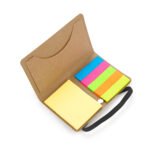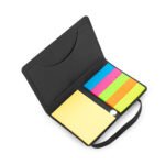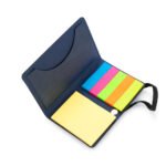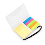 Set de memos adhesivos, contiene: Estuche con espacio para las tarjetas, banderas de papel x 5 colores de 25 hojas cada color, memos amarillos x 25 hojas. Banda elástica en el cierre.