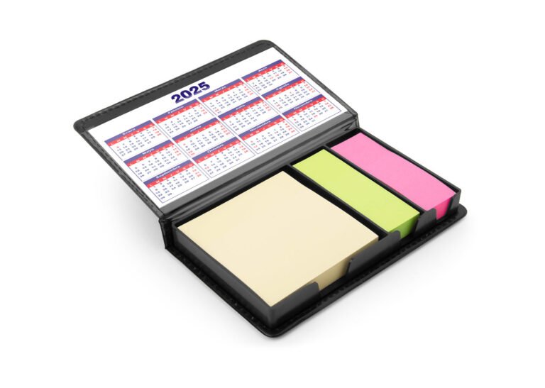 Set de memos adhesivos y 2 juegos de bandras adhesivas de color con 120 hojas cada uno. Incluye calendario.