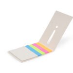 Set de memos con tapa elaborada en material recuperado de cajas Tetra pak. Incluye 4 juegos de banderas adhesivas en papel de colores de 25 hojas cada uno. Diseño troquelado al frente.