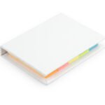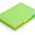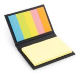 Set con taco de memos amarillos de 50 hojas y 5 tacos de banderas adhesivas en papel de colores de 25 hojas c/u. Tapa dura. Tamaño aproximado de las hojas: A8.