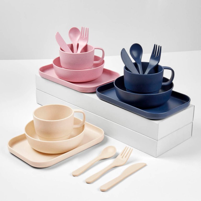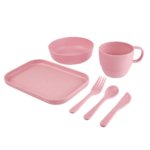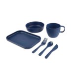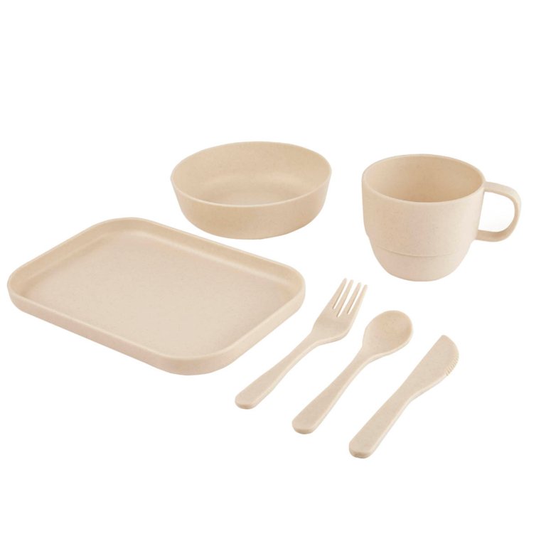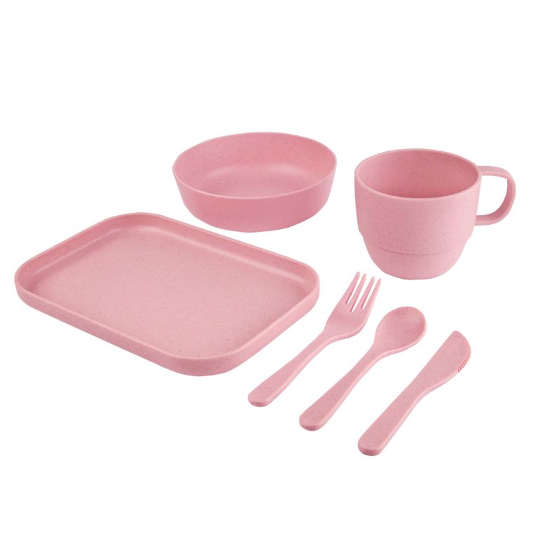 Vajilla de 6 piezas con material eco-friendly. Contiene plato extendido, plato hondo, taza, cuchara, tenedor y cuchillo. Con un diseno atractivo y funcional, es ideal tanto para los mas pequenos como para los adultos, garantizando una experiencia de comida segura y respetuosa con el medio ambiente. Incluye caja individual. Apto para lavavajillas y microondas.