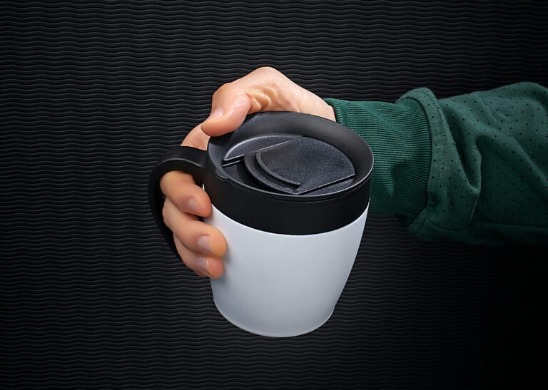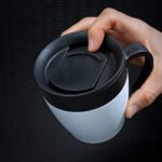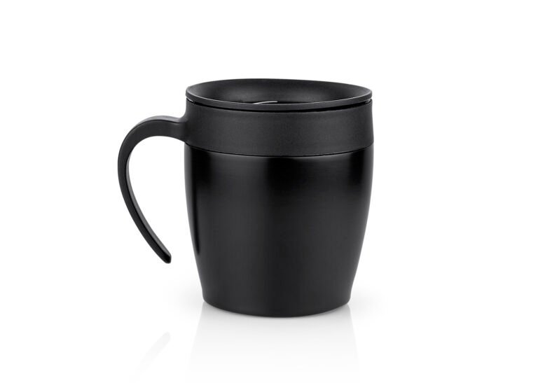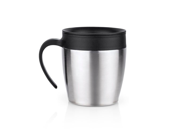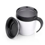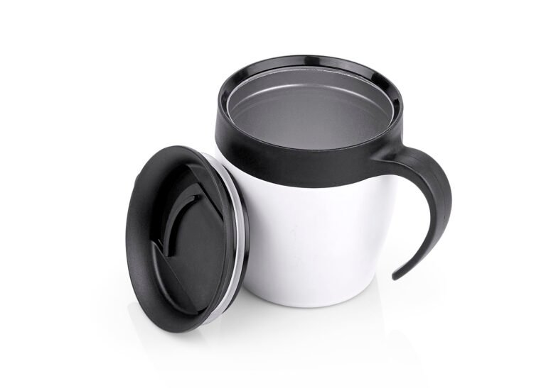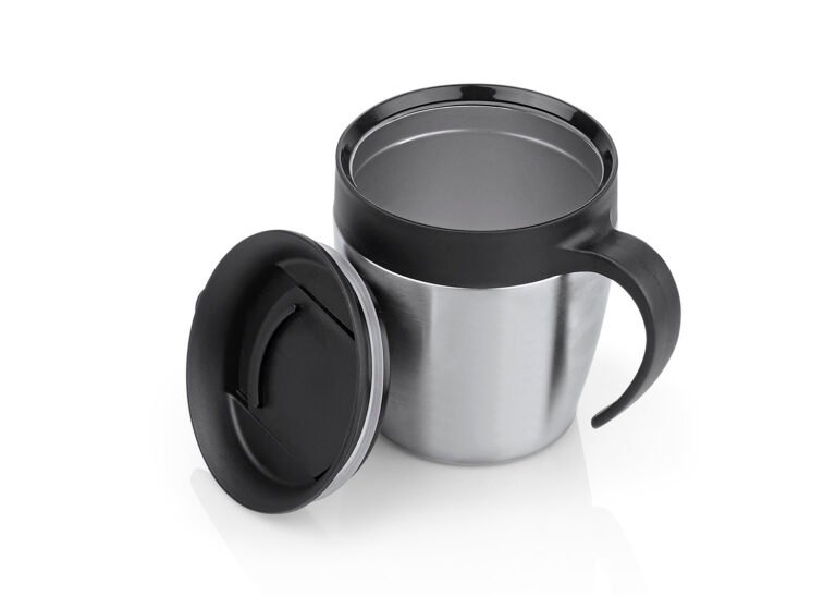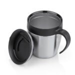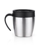 Mug doble pared en Acero inoxidable con tapa. Capacidad 350ml / 12 Oz.