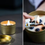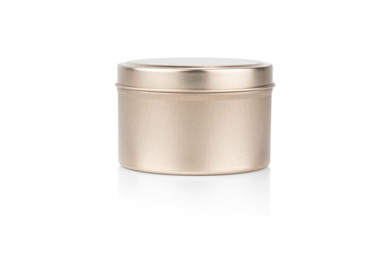 Vela aromatizada con olor a vainilla en envase metálico con tapa, 140 gramos.
